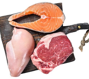 POLLO, RES, PESCADO, HAY UN MONTON DE OPCIONES.